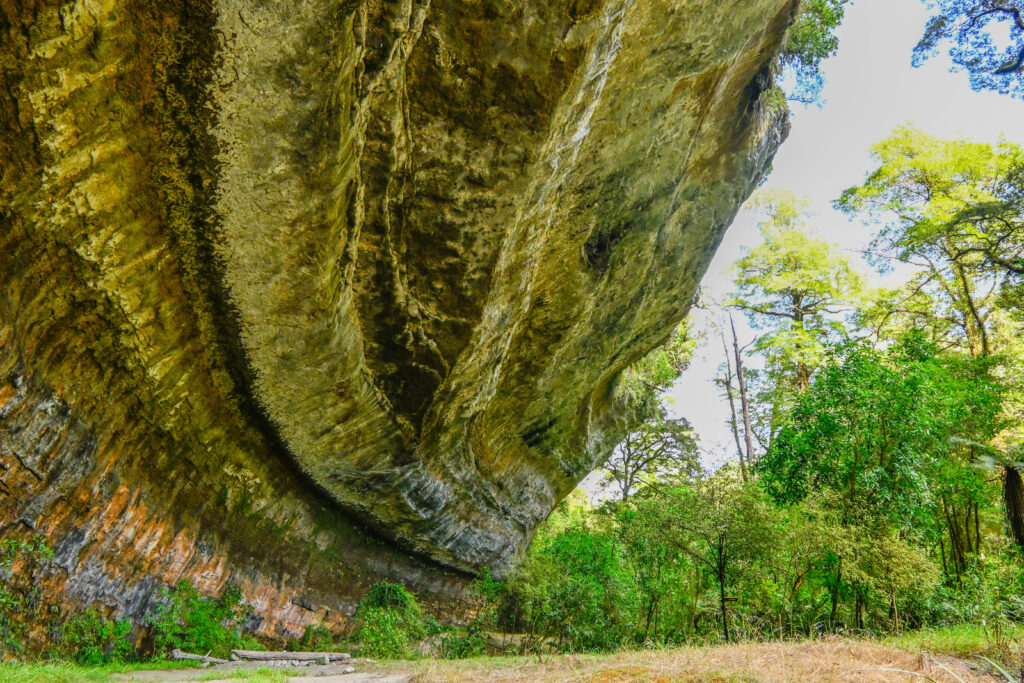 Ca. 5 Flussüberquerungen später erreichte ich dann den Felsüberhang, der so hoch war, dass sogar Bäume unter ihm wuchsen. Es gab eine Feuerstelle, Bänke und sogar eine Toilette. Dort einen Abend am Lagerfeuer zu verbringen und anschließend zelten, ist bestimmt schön – vorausgesetzt es gibt keine Sandfliegen.